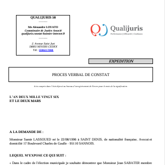 Retrouvez le constat d'huissier suite aux révelations sur la présence d'un sympathisant RN sur la liste Sannois à vivre.
